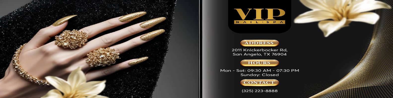 VIP Nail Spa - Nail Salon Knickerbocker Rd, San Angelo, TX 76904. Experience professional nail care and a relaxing atmosphere at VIP Nail Spa — your trusted nail salon in San Angelo.